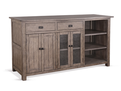 The Doe Valley game table is crafted with mahogany solids and veneers with a reversible top that may be used for dining. The beautiful Buckskin finish flows in every piece with a soft contemporary look