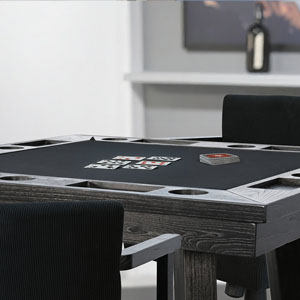 Level up your game night with the Reno Game Table paired with the Gibson Game Chair. Made from mindi solids and veneers