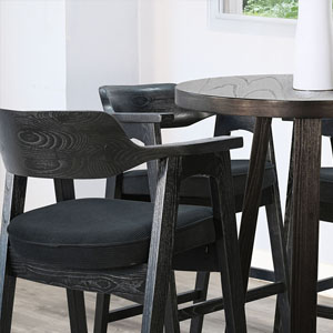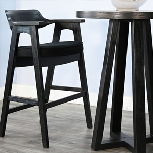 The Mia Bar Table combines style and practicality, perfect for small spaces. Crafted from wire-brushed mindi wood with a deep Cinder finish, it adds warmth and elegance. Its sleek design allows it to fit in compact areas without sacrificing function. Pair with any of the Wren Bar Stools for a cozy, modern space ideal for dining or relaxing.