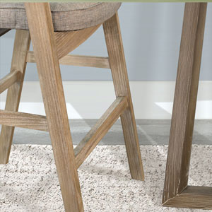 The Mia Bar Table is a perfect blend of contemporary design and practicality, making it an ideal choice for small spaces. Crafted with wire-brushed mindi solids and veneers, the table boasts a textured finish that highlights the natural grain of the wood while adding a touch of rustic charm.