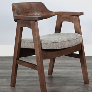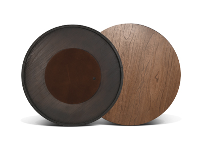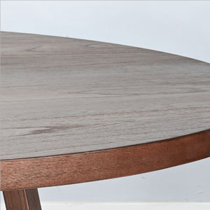 generous legroom, while the round silhouette encourages easy conversation. Crafted from wire-brushed mindi solids and veneers,