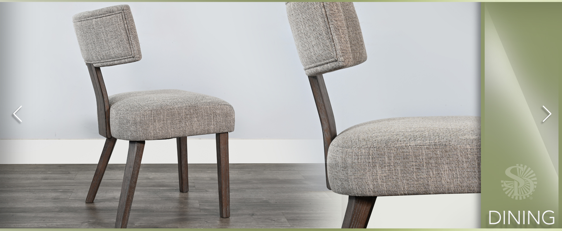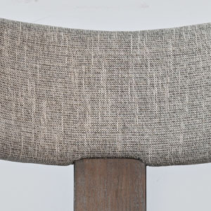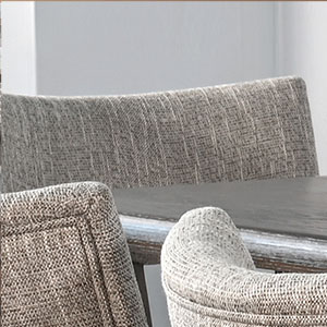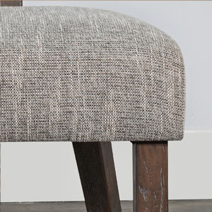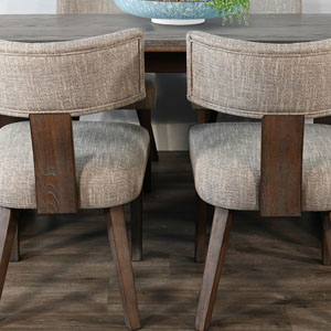 upholstered chairs, the set combines soft, textured fabric with the warmth of wood for a look that feels both stylish and relaxed.