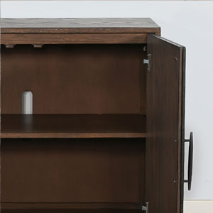Weathered Rum finish. The table features a substantial panel style base and a smooth, spacious top. Paired with comfortably