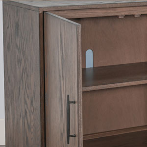 This compact two-door Malibu cabinet delivers modern simplicity in a beautiful rich wood tone. Its clean lines and elevated textures