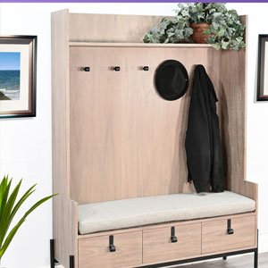 it provides a convenient place to hang coats, hats, and other accessories. Additionally, the three drawers offer extra