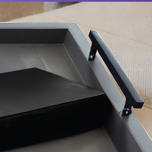 Sleek metal handles make them easy and comfortable to carry around. Using mahogany and mindi solids and veneers,