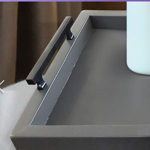 Sleek metal handles make them easy and comfortable to carry around. Using mahogany and mindi solids and veneers,