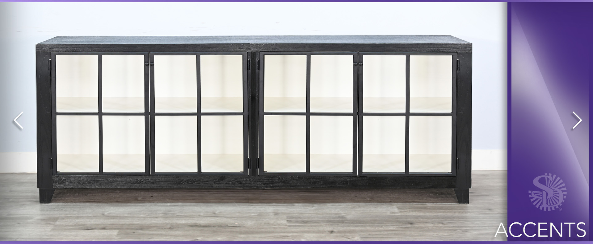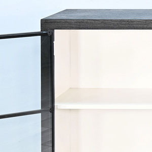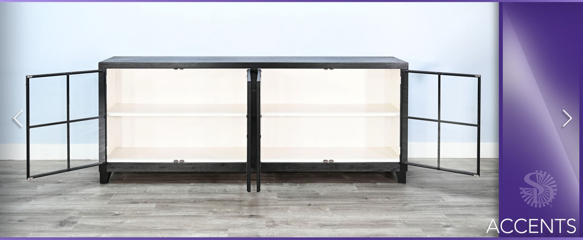The Ryan industrial long accent cabinet boasts a modern elegance with its sleek design, making it a sophisticated