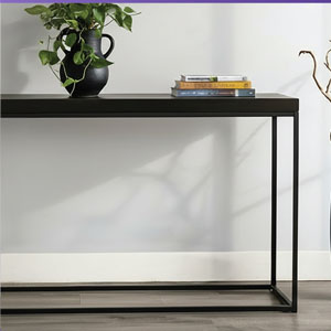 Create a custom look with these Jax console tables. Designed with clean, geometric lines and a sleek black wood-tone top,