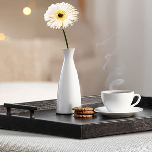 The Tessa Trays bring style to everyday moments. They showcase a square silhouette with rich wood textures highlighted by