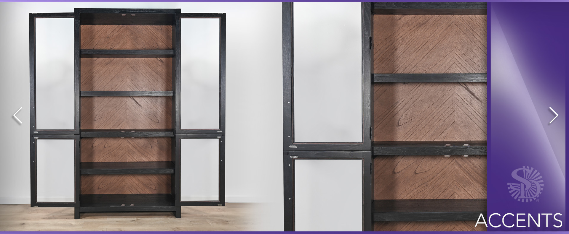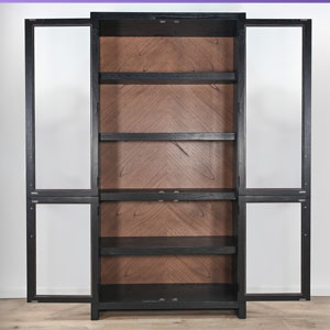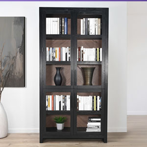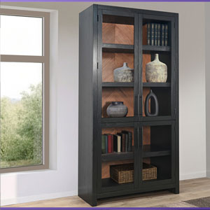 Crafted from Sungkai solids and veneers, the Uptown Tall Cabinet brings refined modern style to any space. Its tall, streamlined profile is balanced by a warm, chevron-patterned wood back panel and framed glass doors that showcase everything inside. Sturdy shelving offers generous storage and display space, while the dark finish adds depth and contemporary sophistication. A striking statement piece designed to elevate both function and aesthetic in the home.