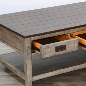 The Homestead Hills occasionals are constructed with mahogany solids and veneers. The two-tone finish draws attention