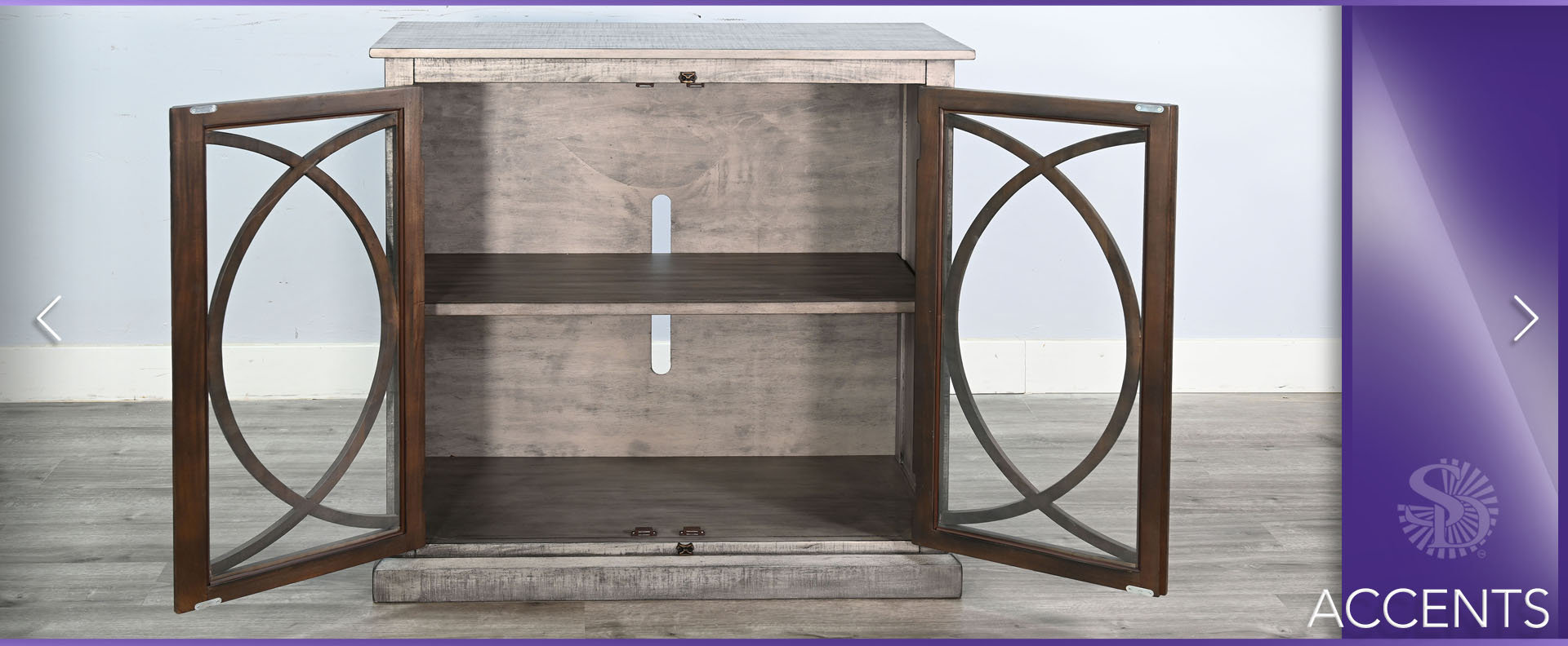 These media consoles make a superb addition to any entertainment area. Their doors feature clear glass, allowing you to