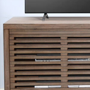 Discover our sleek media console, expertly crafted from mahogany solids and veneers. Designed for modern living,