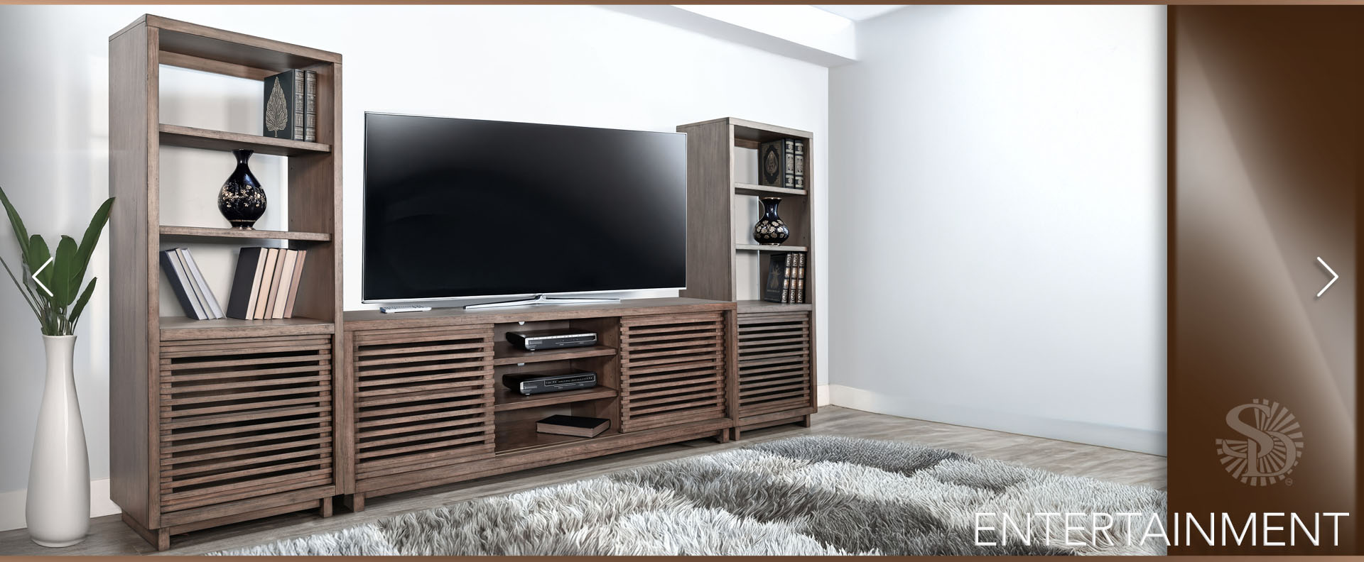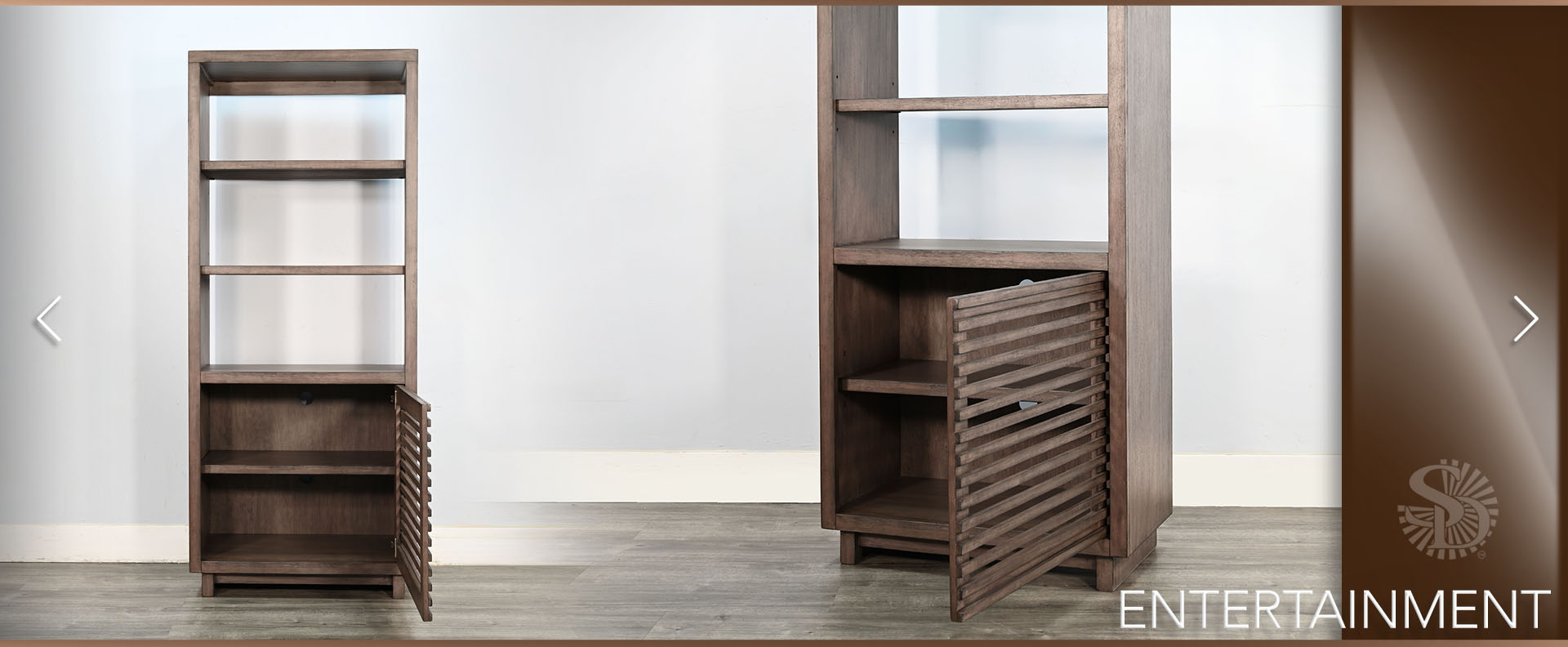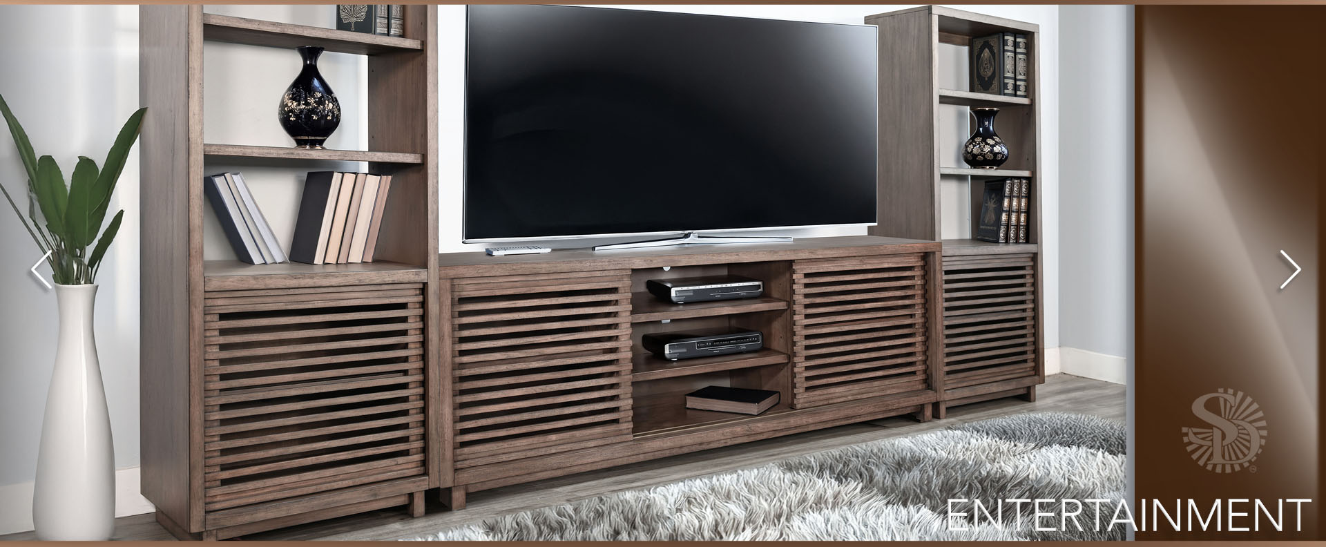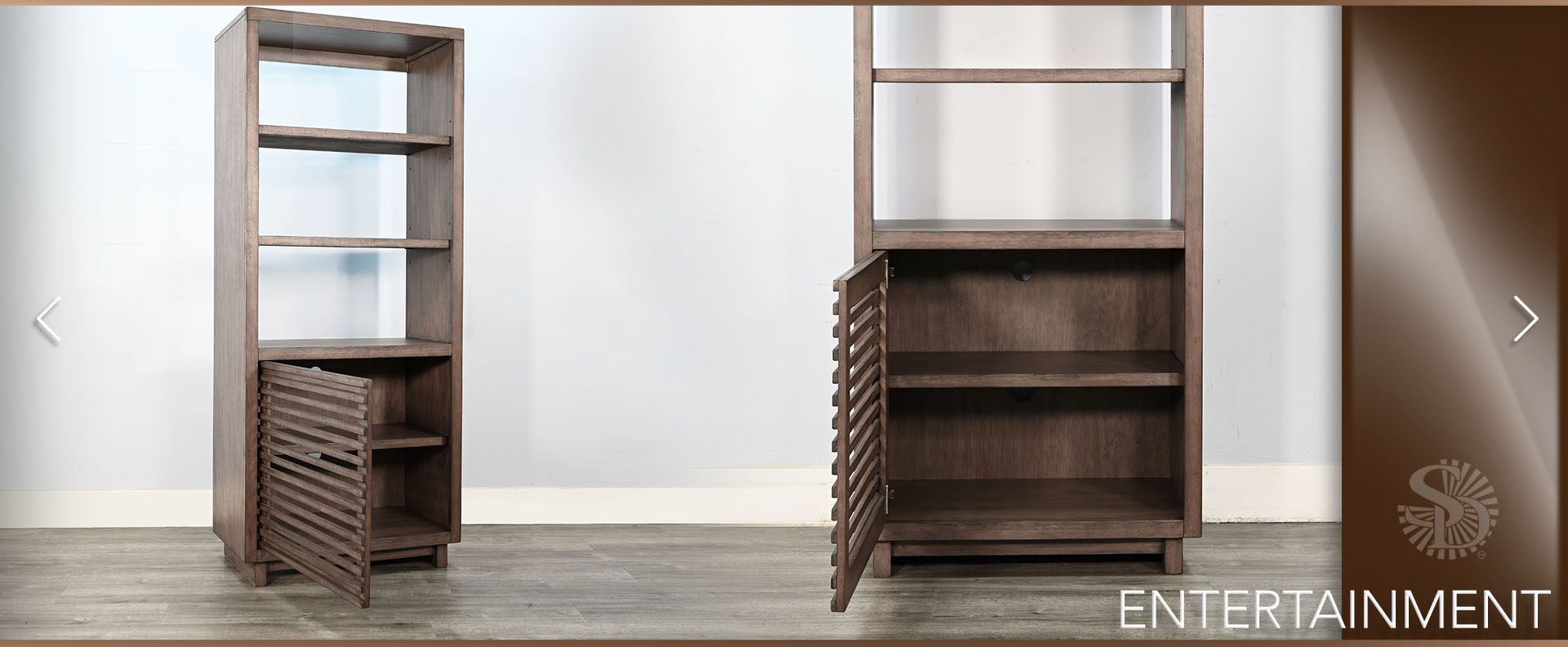 Discover our sleek media console, expertly crafted from mahogany solids and veneers. Designed for modern living, itfeatures cord management, adjustable shelves, and two sliding doors with wooden slot panels. The Buckskin finish adds a touch of sophistication to your entertainment space.