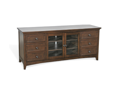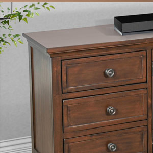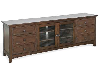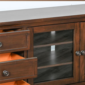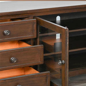 Featuring adjustable shelves and six drawers for all your media essentials. The elegant Coffee Bean finish adds a touch