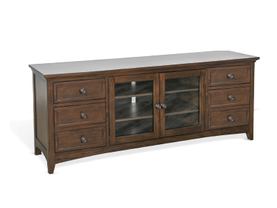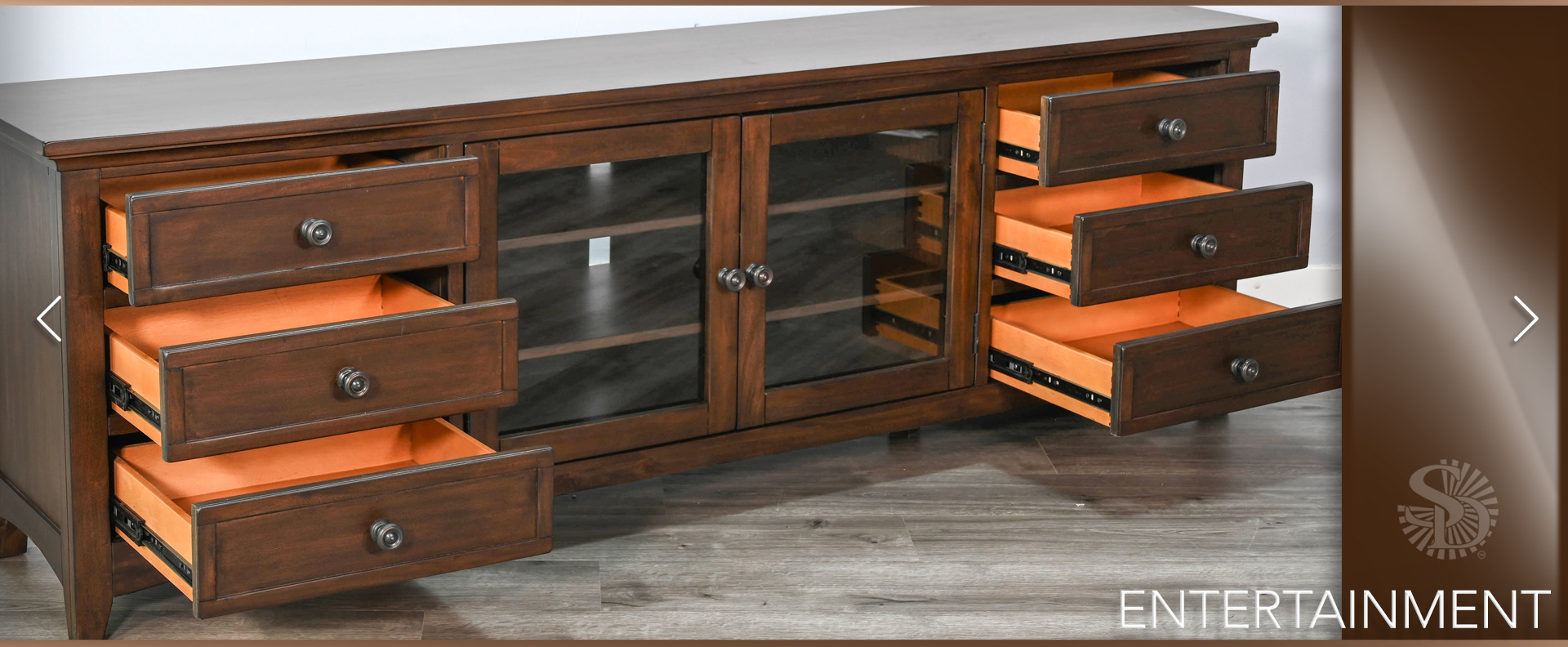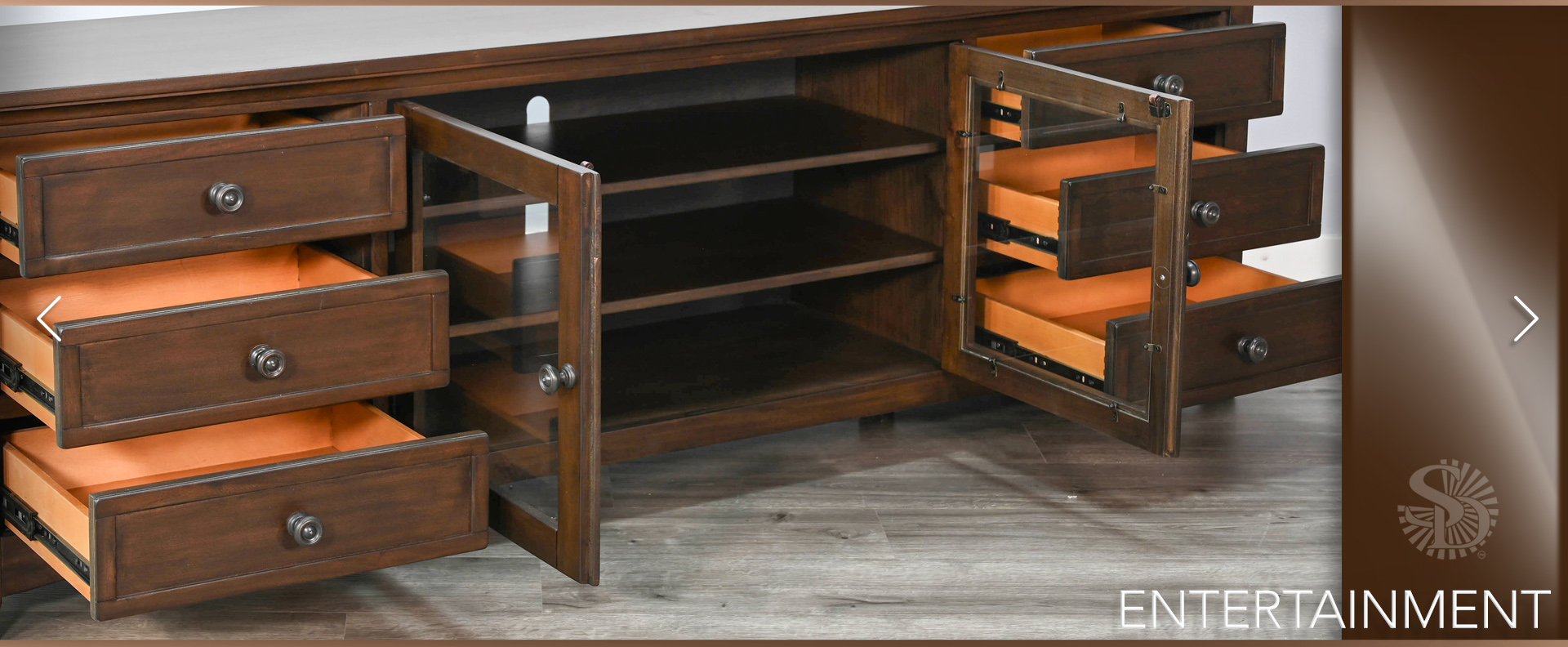 These media consoles will elevate your living space. They are meticulously crafted from mahogany solids and veneers.