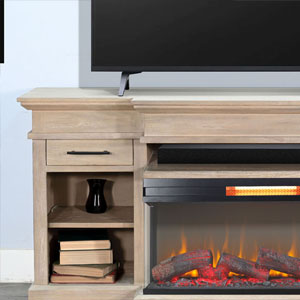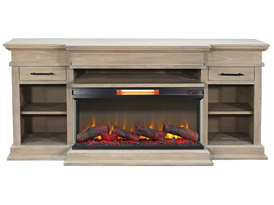 The Mason media console, complete with a fireplace insert, presents a sleek and inviting design that radiates warmth and distinctive charm, effortlessly elevating any room. Fashioned from wire brushed mahogany solids and veneers, it showcases meticulous craftsmanship and is flawlessly adorned in an enchanting wheat finish, amplifying both its allure and longevity.