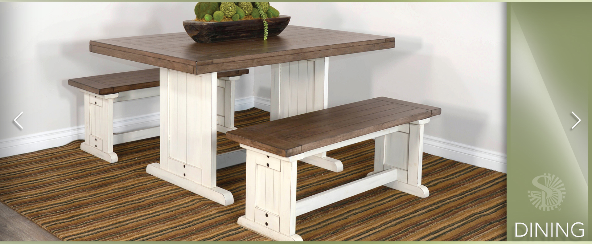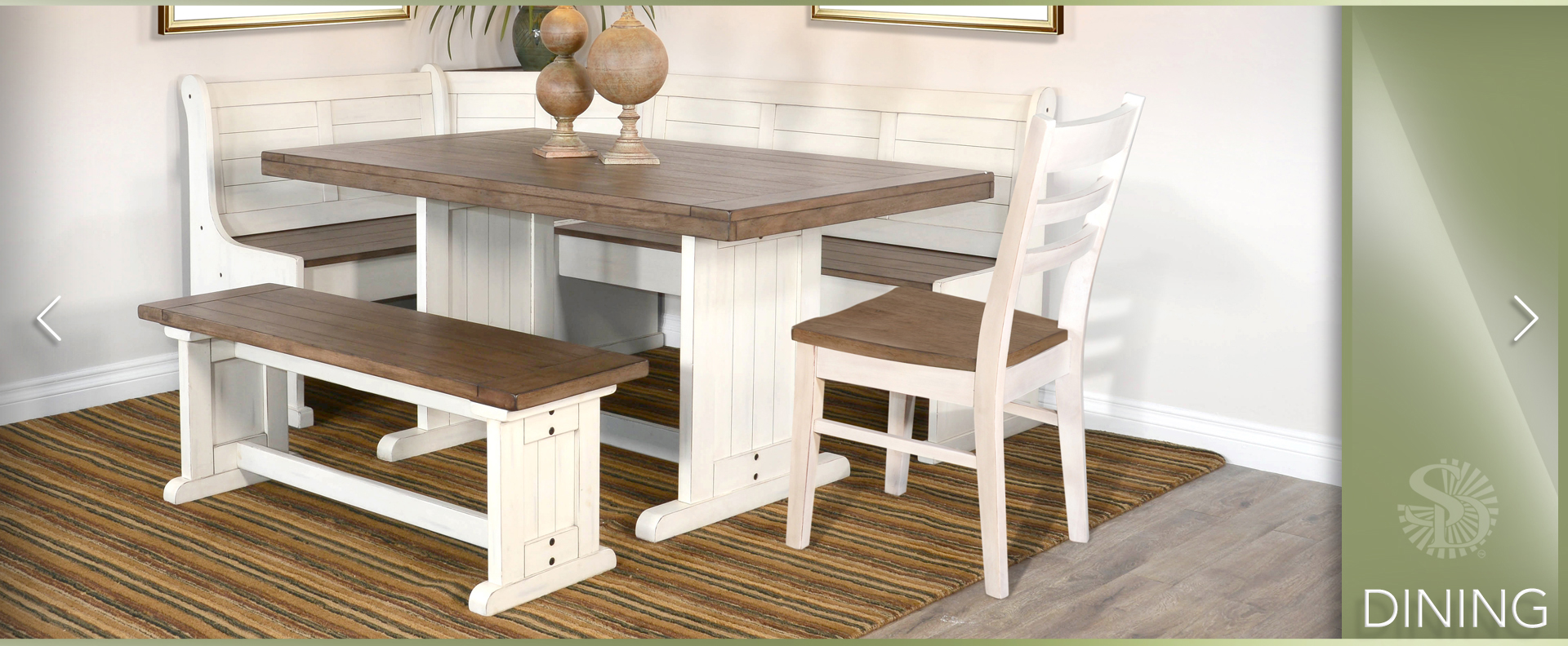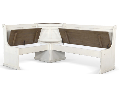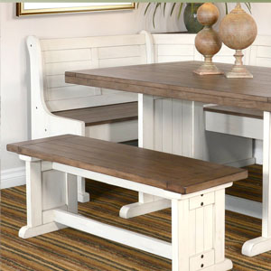 The Pasadena breakfast nook is beautifully crafted with mahogany solids and veneers. A two-tone Marble White and Buckskin finish accentuates its beauty. The versatility of the benches makes the set functional for any use.