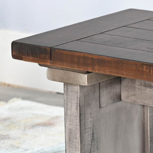 Tobacco Leaf and Alpine Grey finish that accentuates its beauty. The versatile storage benches are reversible and