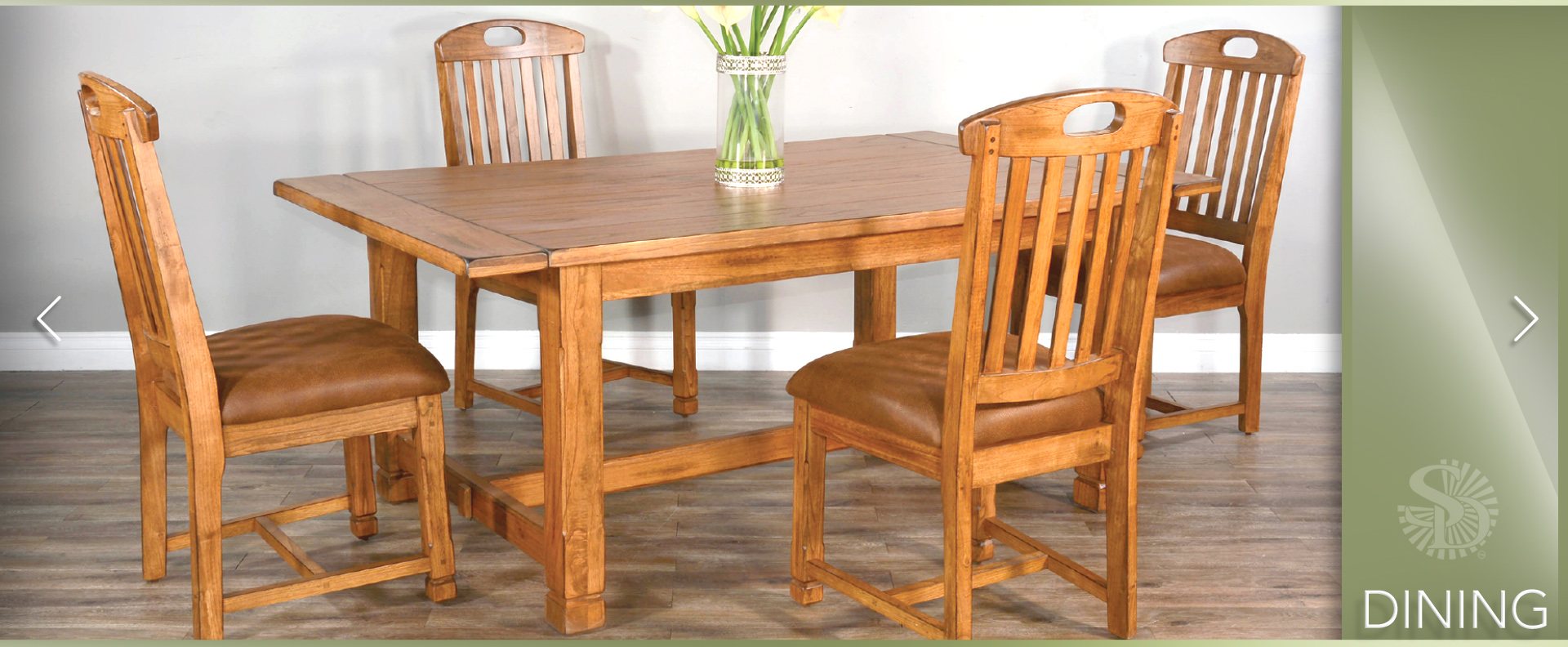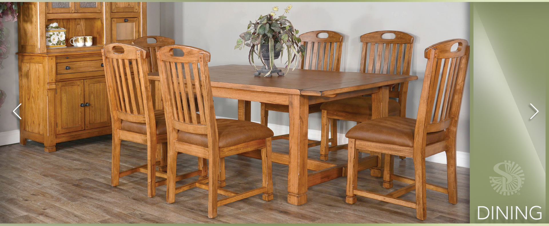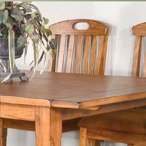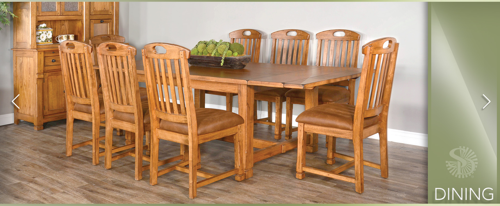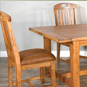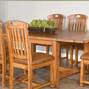 From our Sedona Collection, this traditional dining set was crafted with rustic mindi solids and veneers.