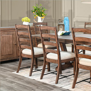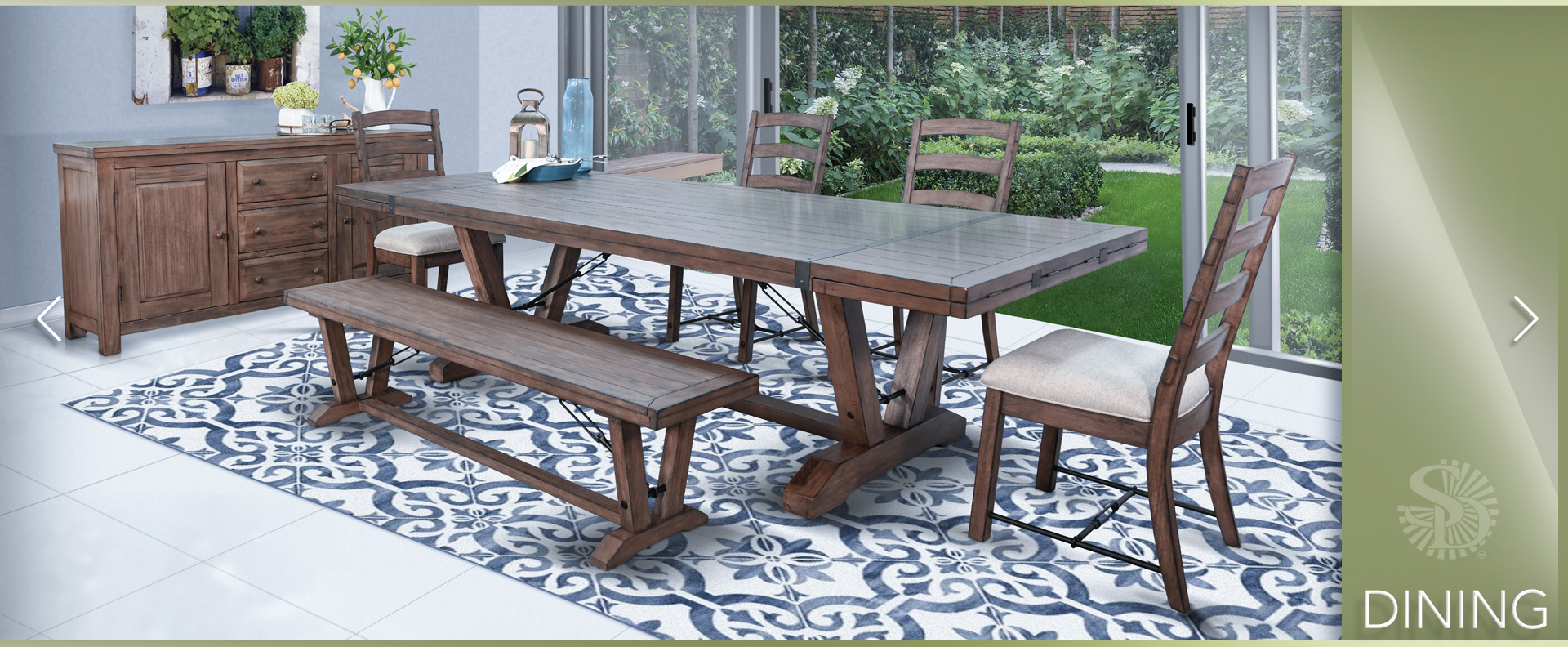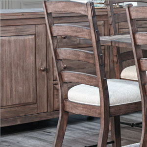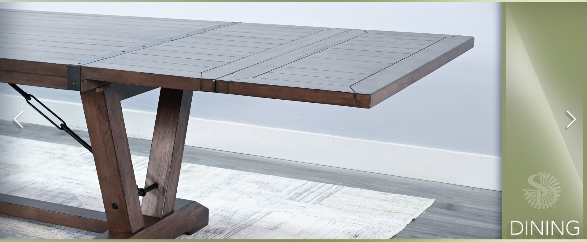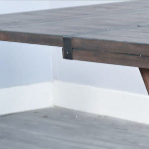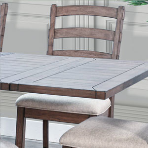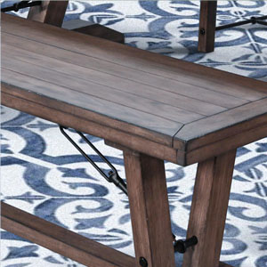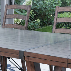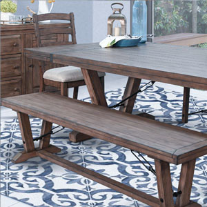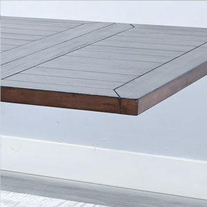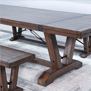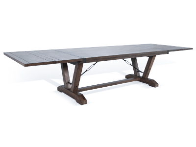 This table expands with two 16" leaves allowing to seat ten people comfortably. Dining items feature industrial rustic