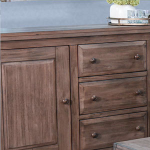 hardware accents, like turnbuckle stretchers. The server has removable wine racks, two adjustable shelves, and three