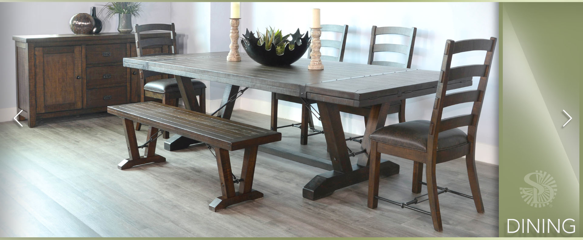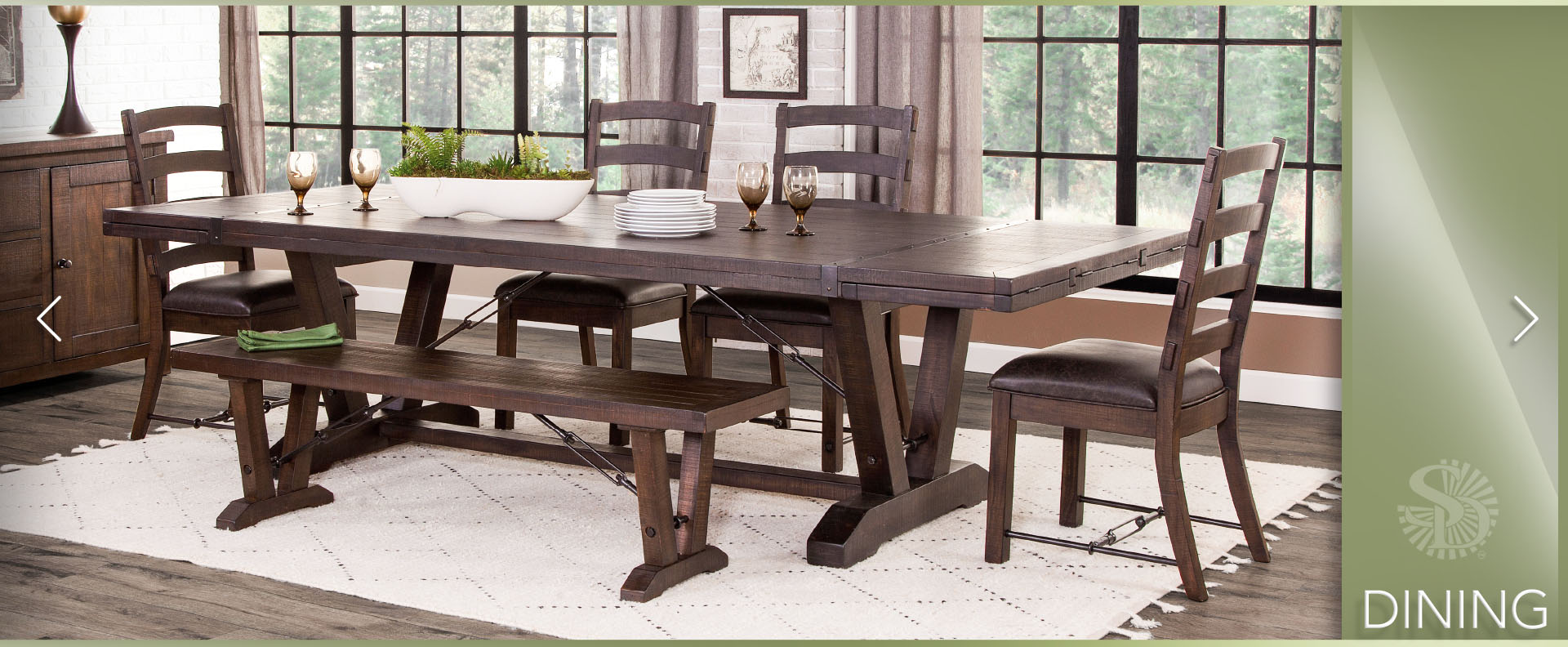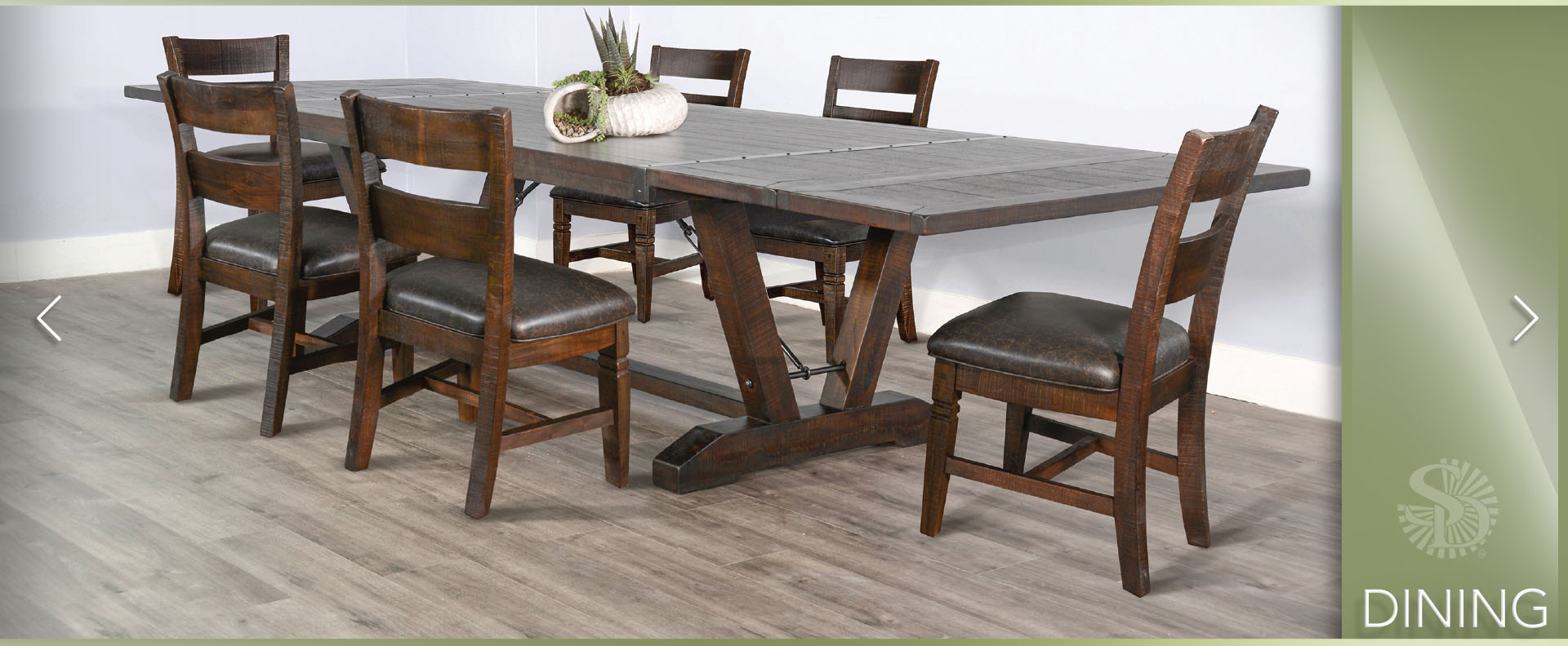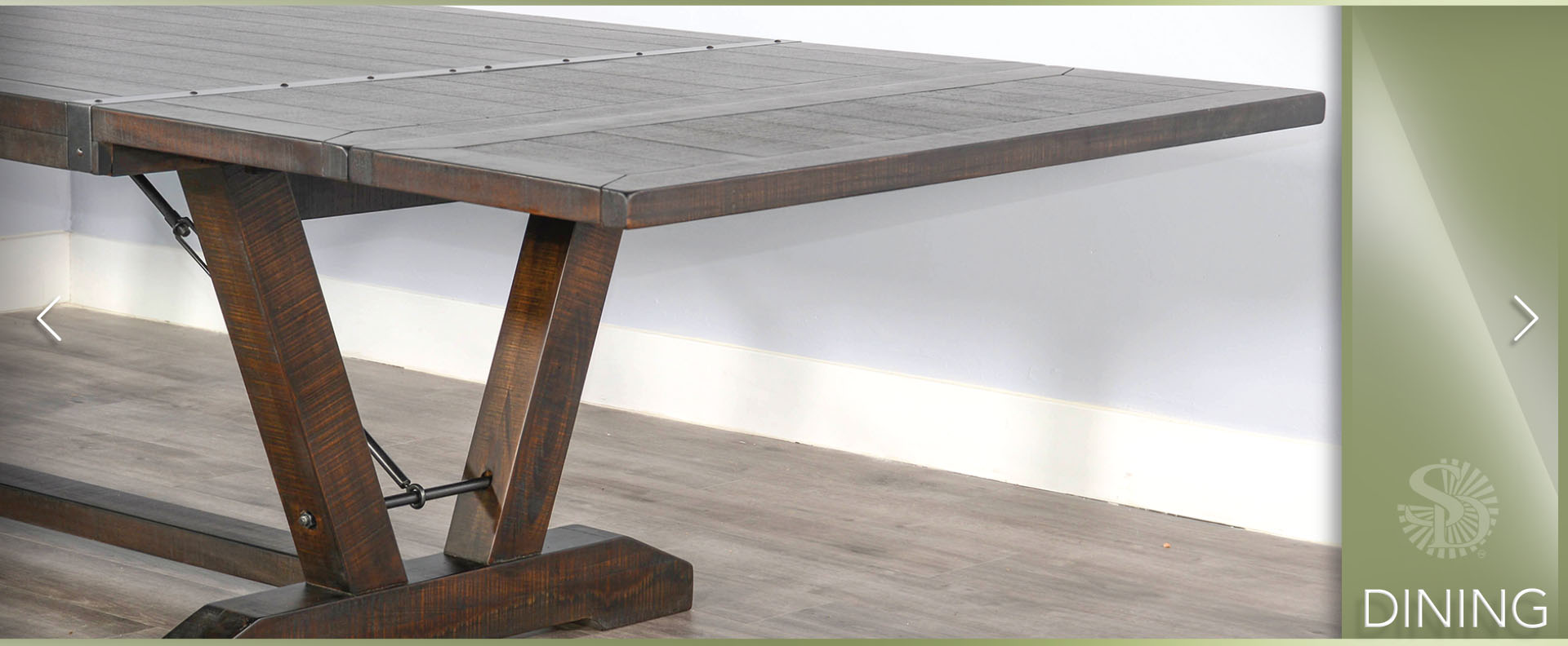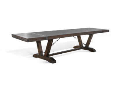 This table expands with two 16" leaves allowing to seat ten people comfortably. Dining items feature industrial rustic