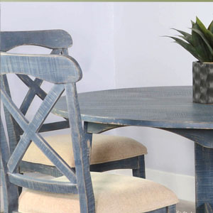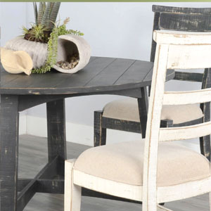 The Marina Collection has a fun, refreshing blend of character with several finishes that may be combined to bring color and life to any room. This dining set is an example of a practical, sturdy, and well-balanced design full of beauty and vitality