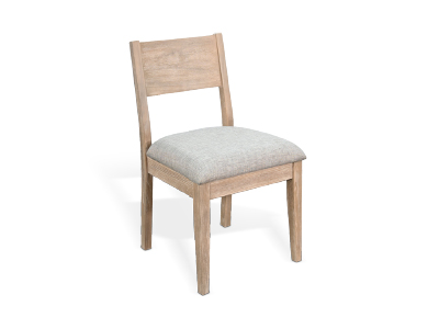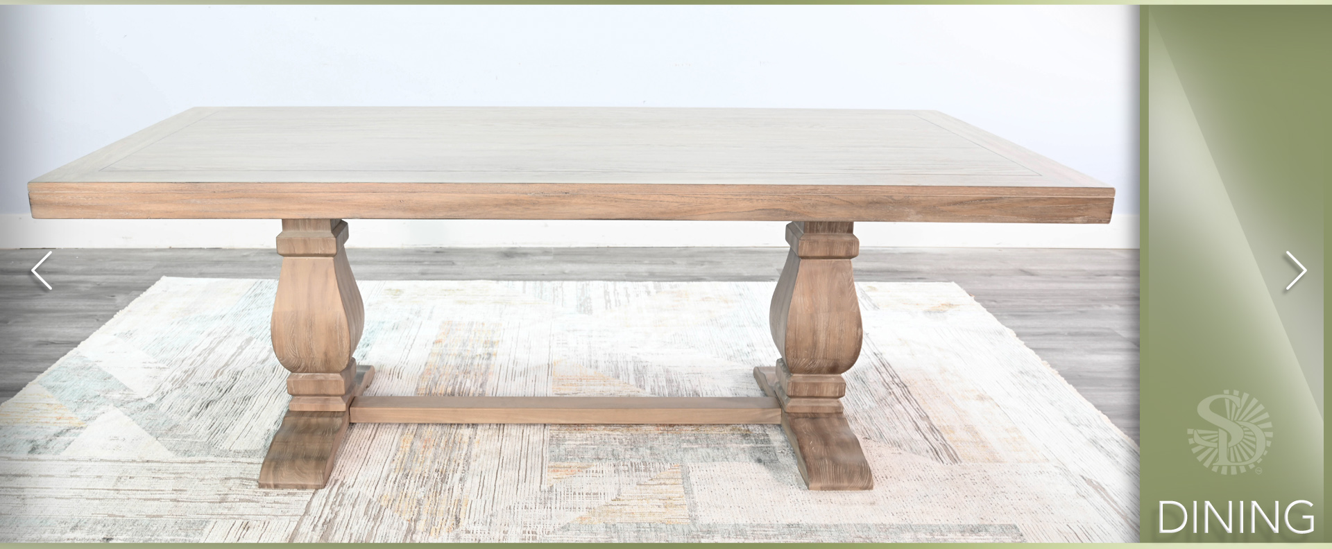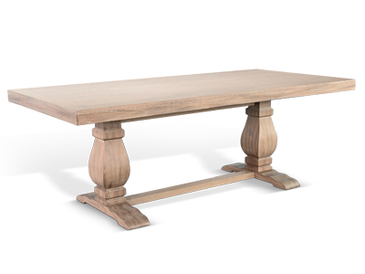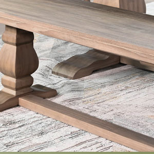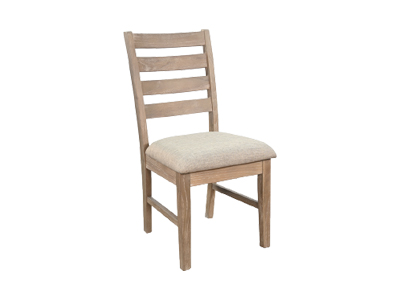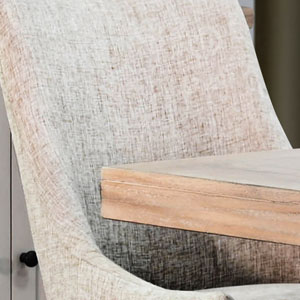 The Gianna dining set is constructed with wire-brushed red oak veneers and mindi solids. The Olivia highback and