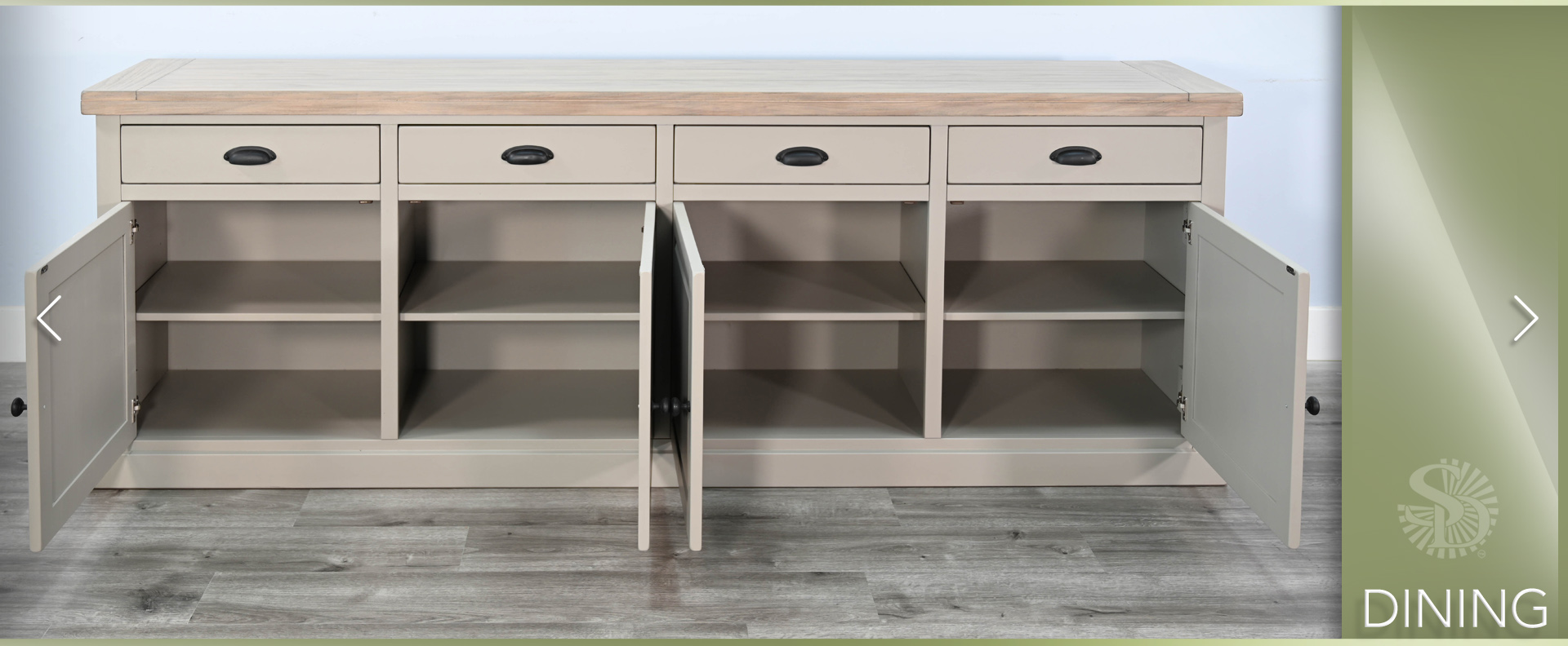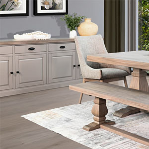 and the delicacy of the chairs create a sensation of eclectic and elegant style. See also the server for lots of storage.
