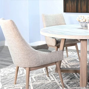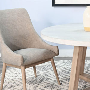 The Rowan Round Dining Table has a geometric base that provides distinct character. With the option of three different