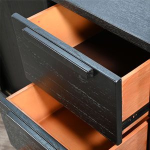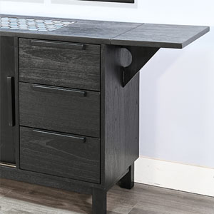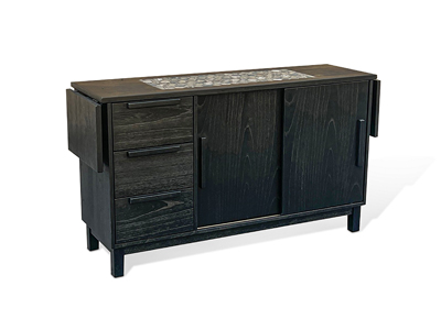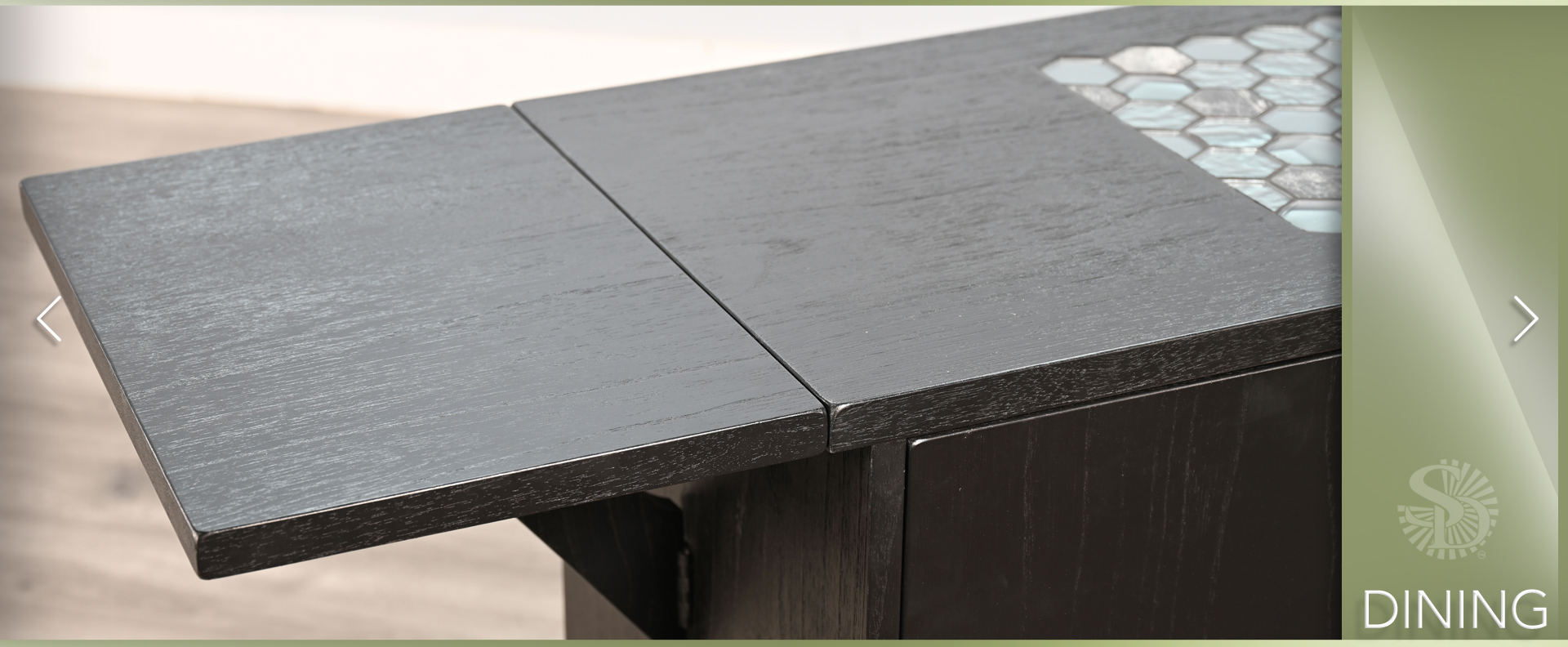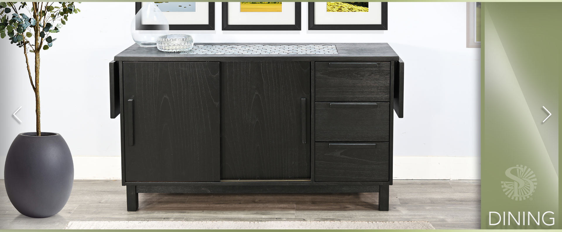 spaces and is complemented by a drop-leave server that provides lots of storage, The chairs feature a comfortable