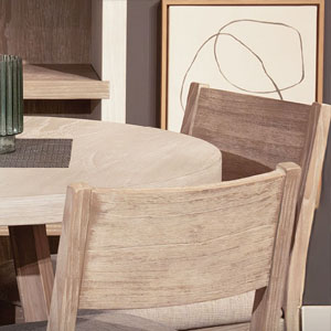 wire-brushed mindi solids and veneers. Its exquisite two-tone finish adds a touch of sophistication, making it an