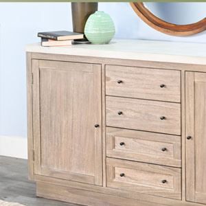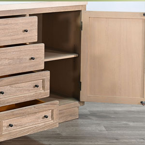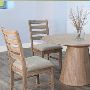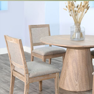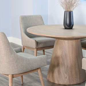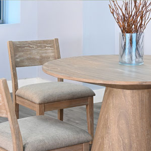Modern casual dining table designed to make the most of smaller dining spaces in style.Warm wire brushed wheat finish