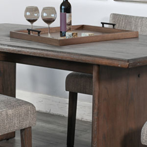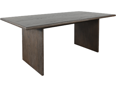 Weathered Rum finish. The table features a substantial panel style base and a smooth, spacious top. Paired with comfortably