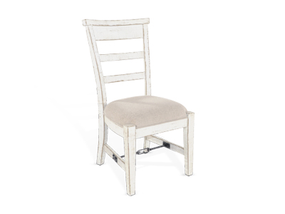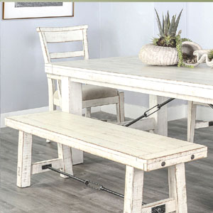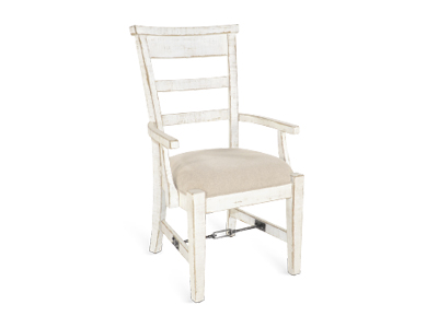 distressed mahogany solids and turnbuckle accents that add sturdiness and flow. The chairs are comfortably upholstered,