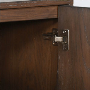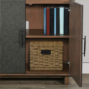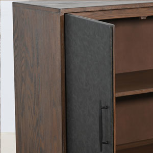 Weathered Rum finish. The table features a substantial panel style base and a smooth, spacious top. Paired with comfortably