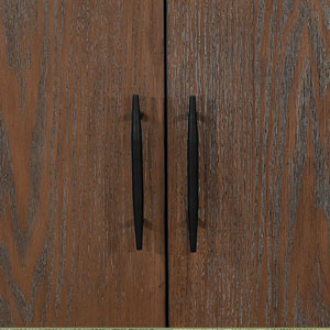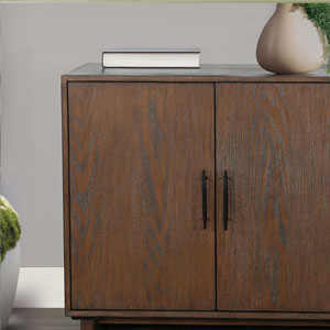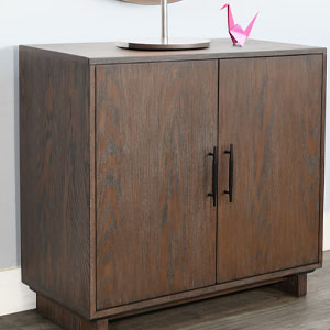 This compact two-door Malibu cabinet delivers modern simplicity in a beautiful rich wood tone. Its clean lines and elevated textures