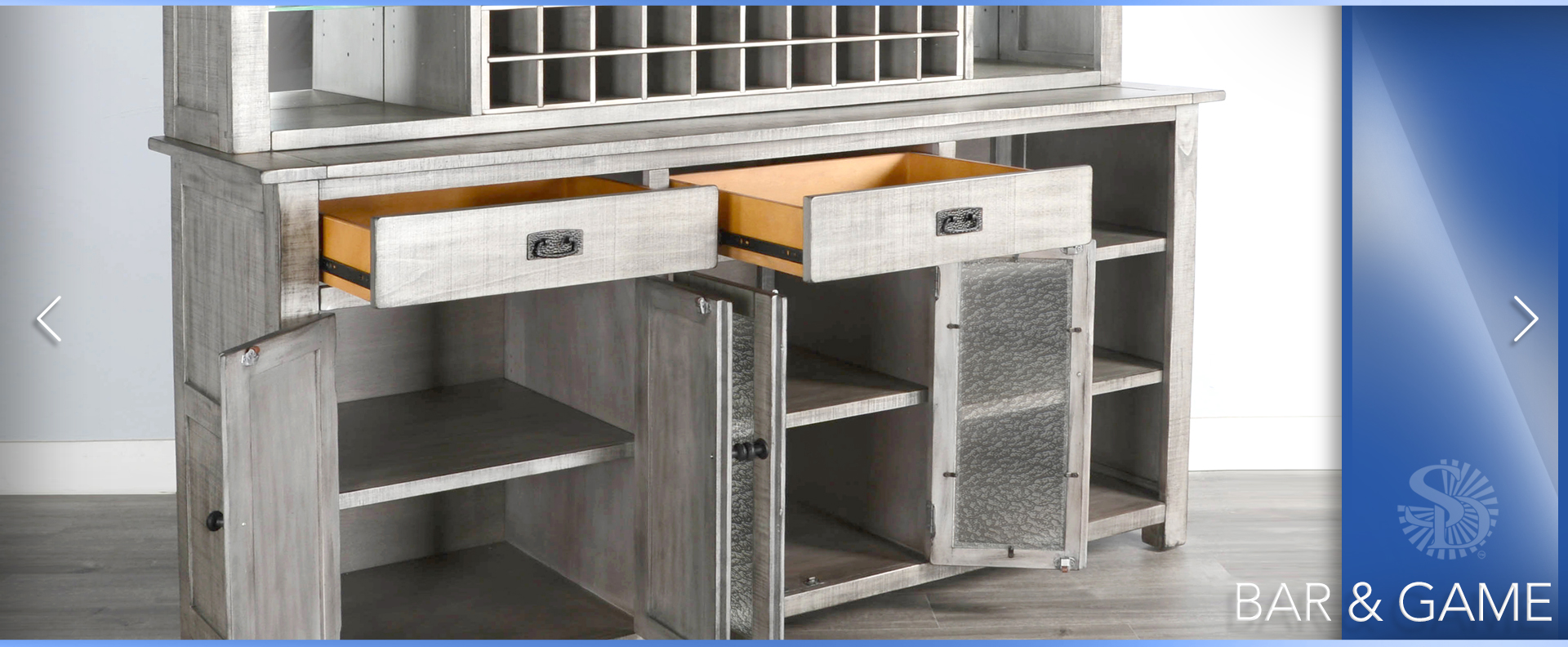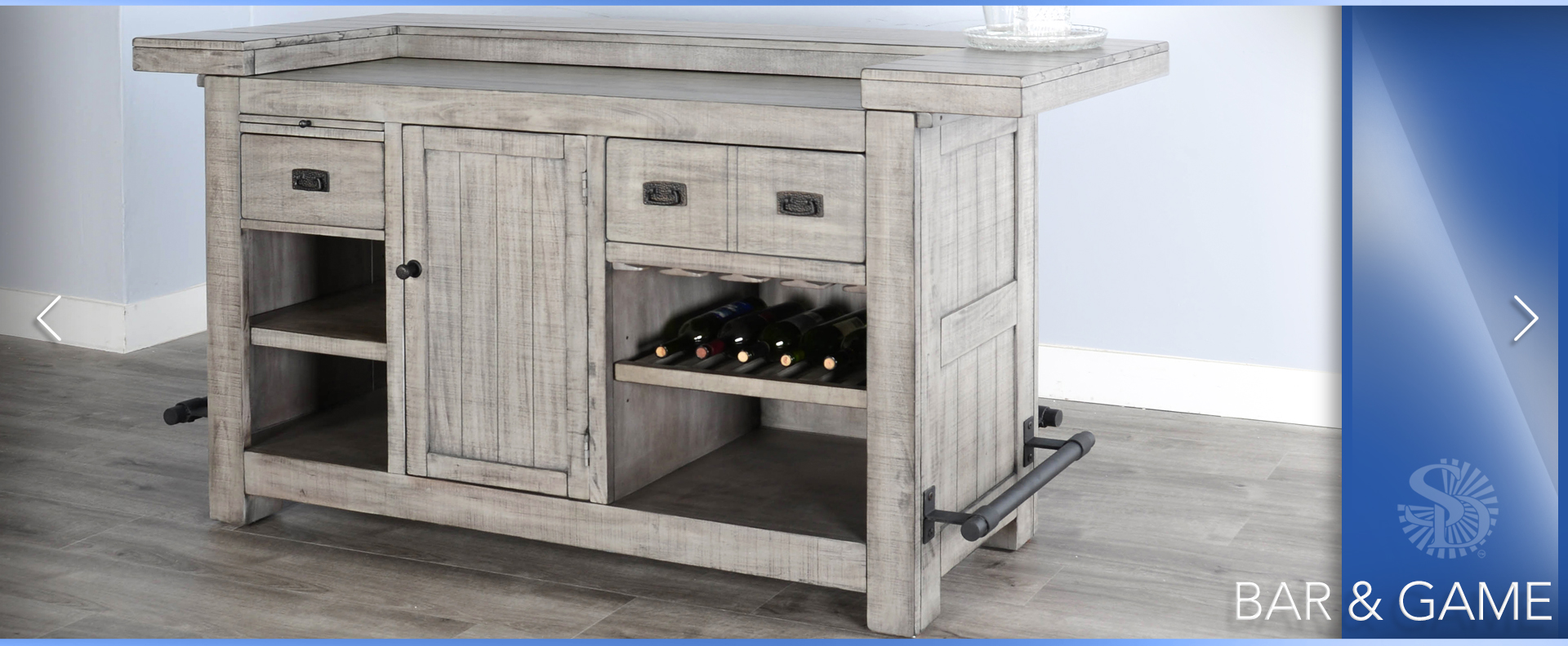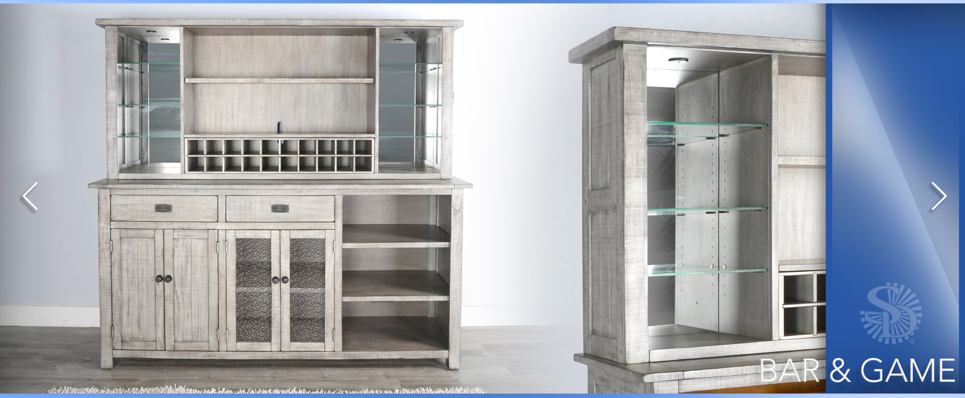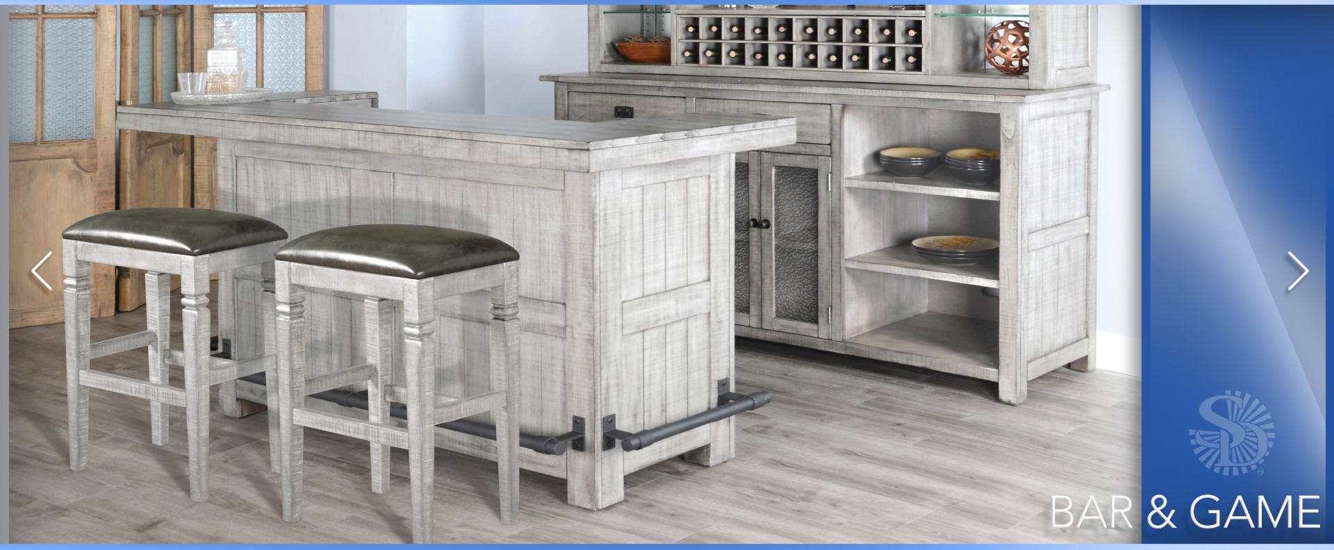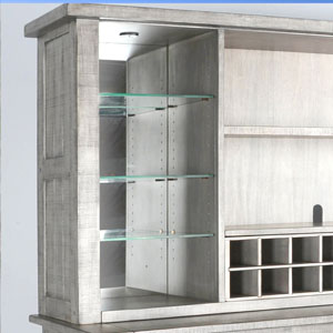 The Alpine bar and back bar are beautifully designed with a modern finish. We used rough-sawn mahogany solids and veneers in their construction. This complete set provides all you’ll ever need.