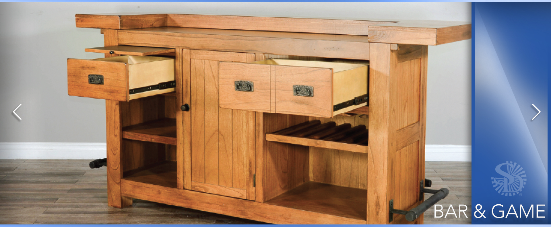 The Sedona 80" Bar and back-bar are the perfect addition to any home it’s built with mindi solids and veneers, and features storage for wine bottles and stemware rack.