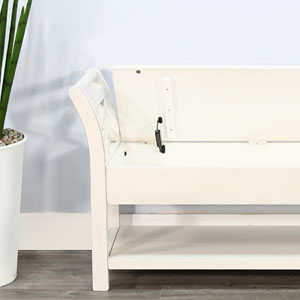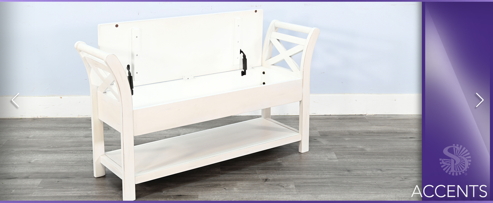 These versatile accent benches are the perfect addition to any room. Made from mahogany solids and veneers these are built to last. Hidden storage under the seat and a bottom shelf offer solutions to help keeps things organized.