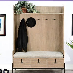 it provides a convenient place to hang coats, hats, and other accessories. Additionally, the three drawers offer extra