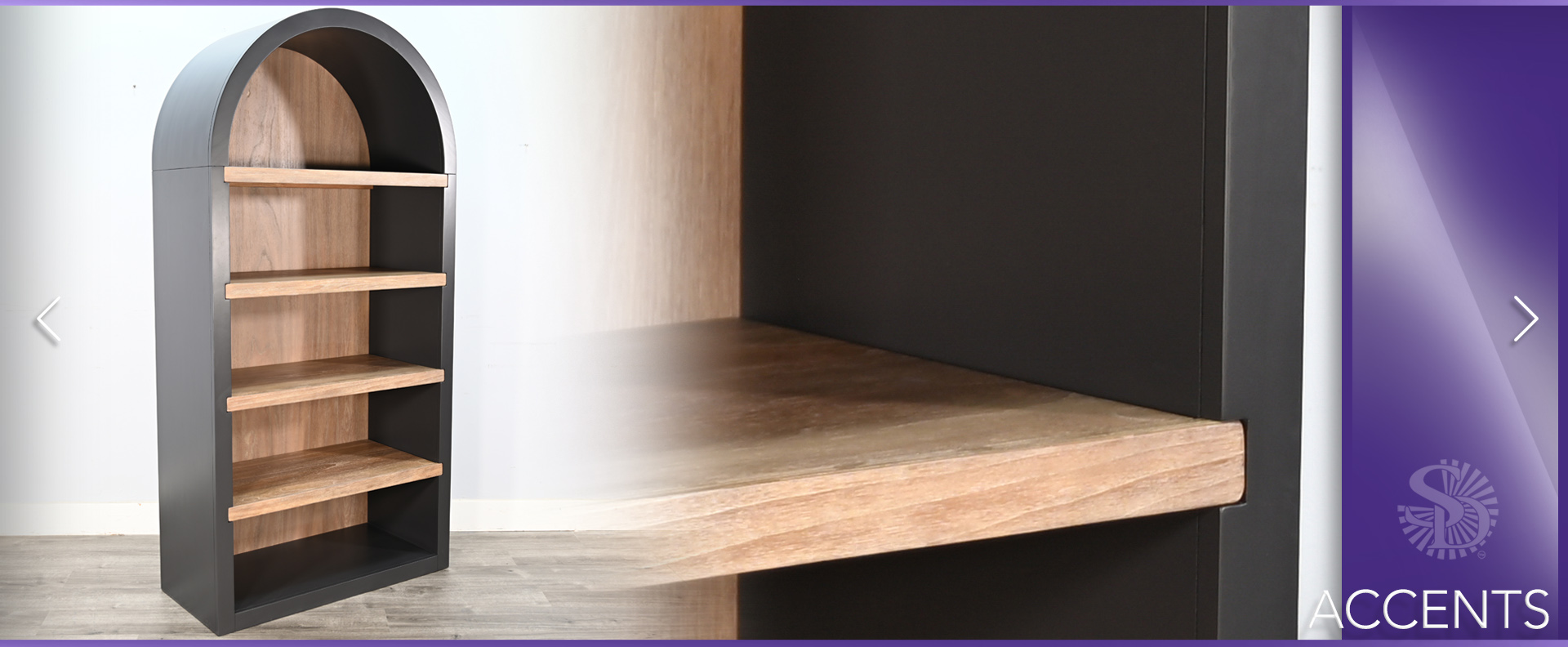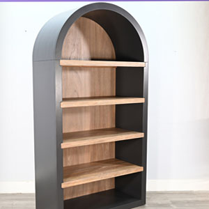 The Logan Arched Bookcase is a contemporary piece that exudes elegance and a sleek design. Available in multiple