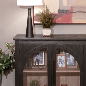 Timeless design meets versatile functionality with the Elena Cabinet. Crafted from wire-brushed mindi solids and veneers, this elegant piece features a sophisticated dual-tone Umbra and Oak Grove finish, adding depth and warmth to any space. Designed for adaptability, the adjustable shelf provides customizable storage for your essentials, whether you're organizing dinnerware, books, or décor. Proudly made in Indonesia, the Elena Small Cabinet is a perfect blend of style and practicality, making it a refined addition to any home.