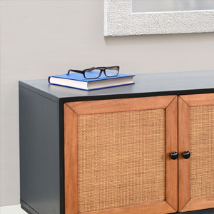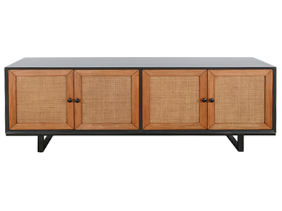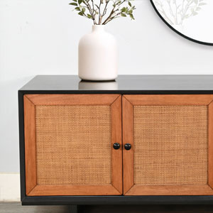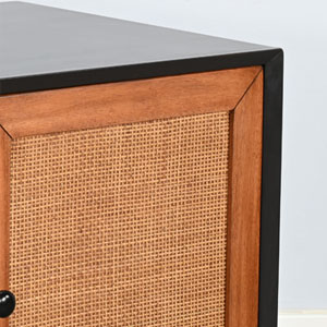 Sleek, stylish, and functional, the Modern Accent Cabinet is designed to elevate any space. Crafted in Indonesia from premium mahogany solids and veneers, it features chic cane doors that add texture and warmth. The adjustable shelves provide customizable storage, while the knock-down metal base offers a sturdy, modern touch. Finished in a sophisticated Black hue, this cabinet is the perfect blend of contemporary design and timeless craftsmanship.