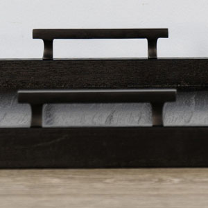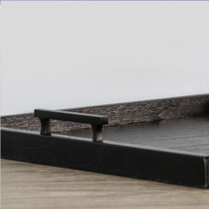 The Tessa Trays bring style to everyday moments. They showcase a square silhouette with rich wood textures highlighted by