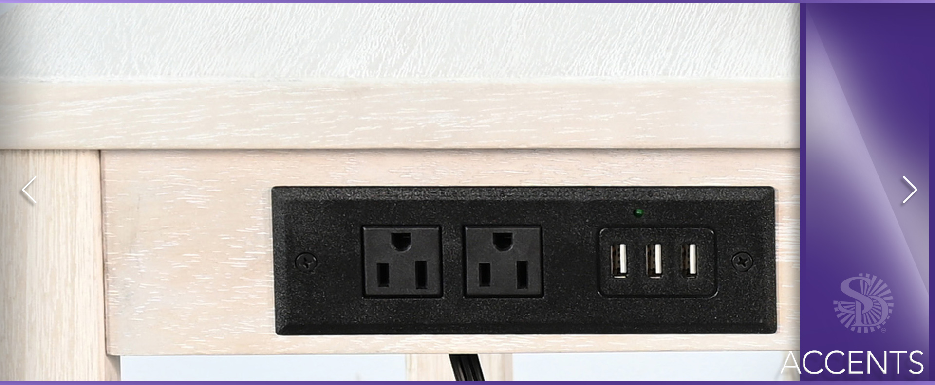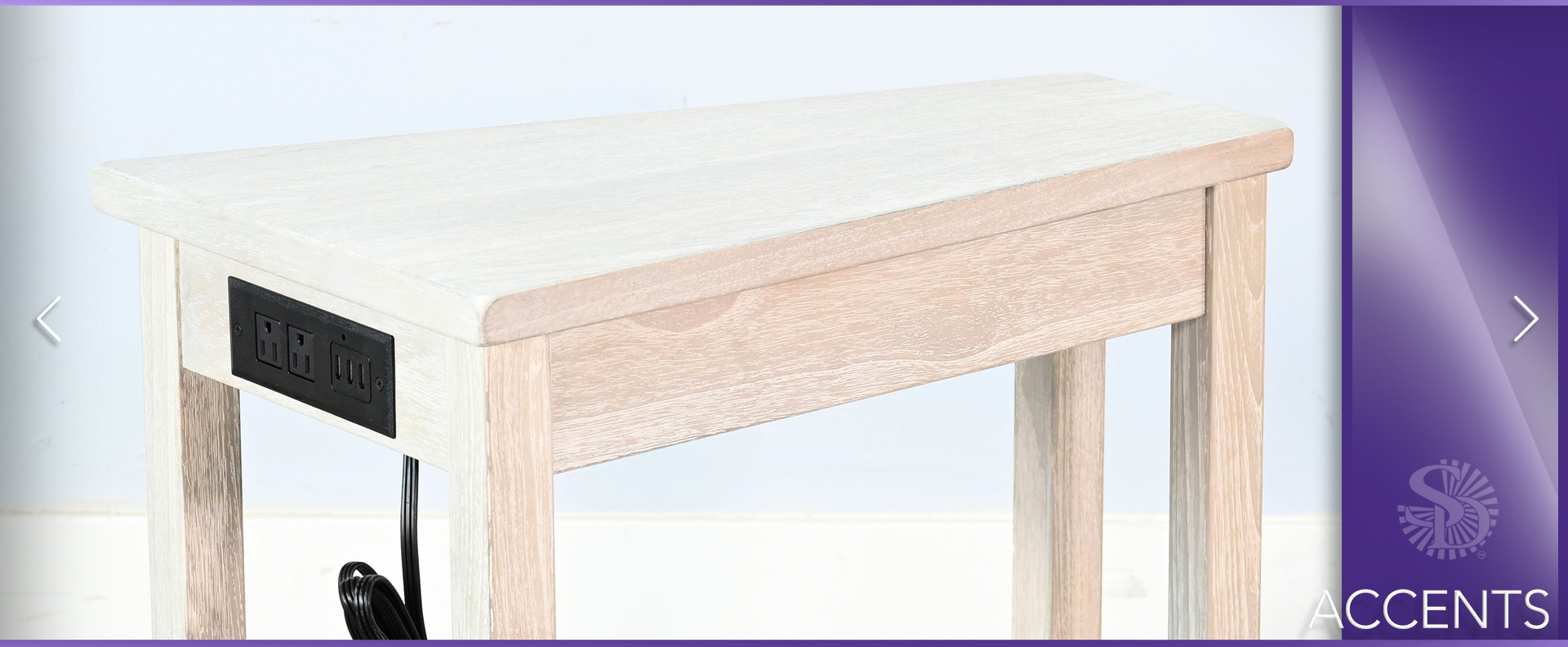 These chairside tables, equipped with a power strip, provide a convenient solution for charging and powering electronics.