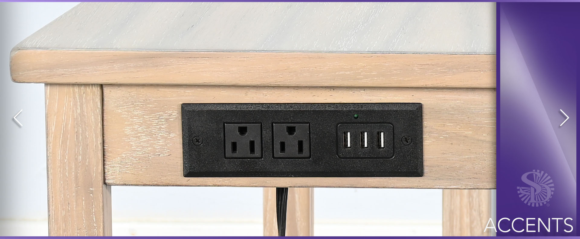 These chairside tables, equipped with a power strip, provide a convenient solution for charging and powering electronics.