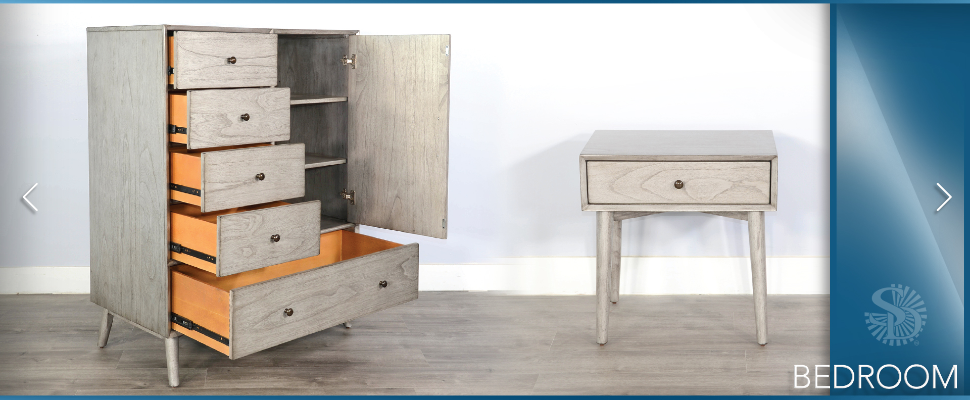 The American bedroom set, is a modern take on a mid-century design. Its delicate straight lines and clever construction with mindi solids and veneers, makes this bedroom set the perfect choice for any bedroom.
